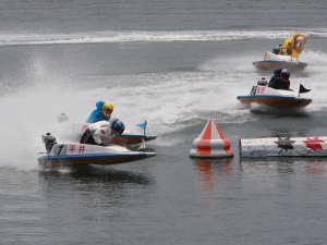 レース終了直後の揚降装置付近にて同県の先輩で |